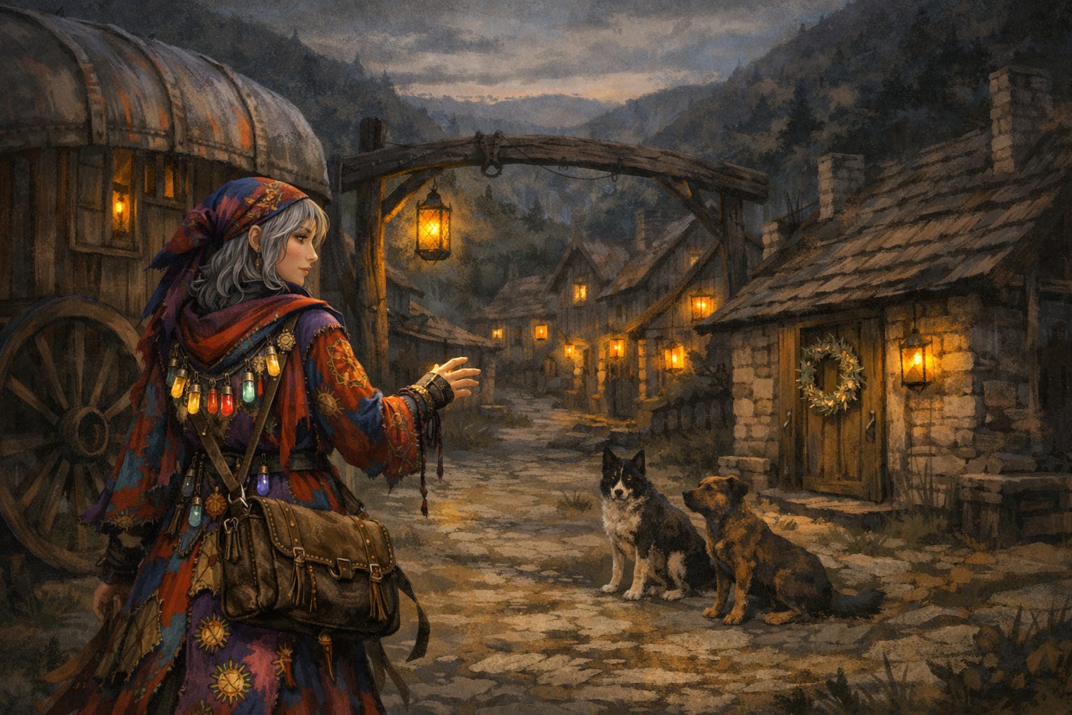 The town of Larkhollow sat cupped in a valley like a hand that had forgotten how to open. At the gate, the lanterns burned with a weak, tea-colored flame, and every door wore a wreath of dried rosemary as if the place could be protected by kitchen spells and hope. Even the dogs did not bark. They watched her wagon roll in, silent as judges.